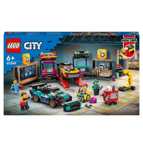 - Customizing cars is kids’ play – This multi-feature LEGO® City Custom Car Garage (60389) is packed with features that will shift imaginative play up a gear